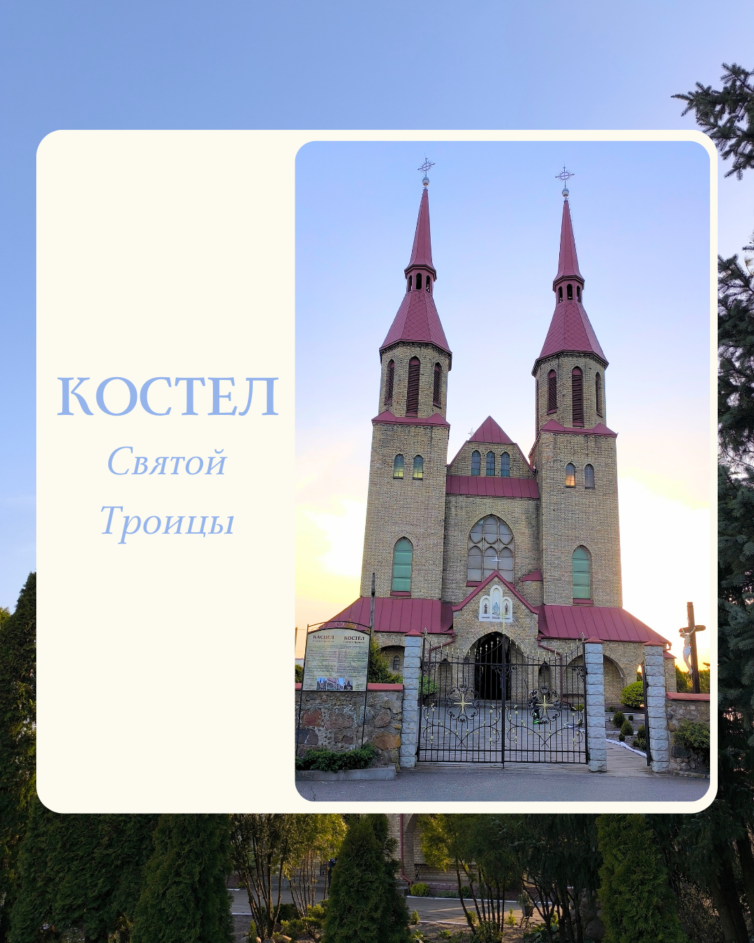 Костел был построен из кирпича в 1913 году по проекту архитектора И.П. Дяконского. В 50-годах 20 в. храм был закрыт на 40 лет: сначала здание превратили в магазин, а затем в колхозное зернохранилище. Только в конце- 1980-х было принято решение вернуть святыню католическому костелу.