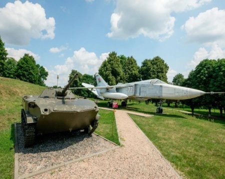 Рядом развернута экспозиция военной техники: две 85-мм. пушки Д-44, символизирующие преемственность артиллерийских традиций с 1941 года, и боевая машина десанта БМД-1П — символ памяти о войне в Афганистане. В 2017 году коллекцию пополнил самолет-разведчик Су-24МР. Ранее он состоял на вооружении 116-го гвардейского полка в поселке Россь, поэтому его полеты были хорошо знакомы жителям Зельвы.