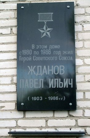 Мемориальная доска, посвященная Герою Советского Союза П.И. Жданову (~400 м) (ул. Победы, 10, 53.144225, 24.818583). Жданов Павел Ильич родился в 1903 году в г. Слоним в семье служащих. В 1943 году за успешное форсирование реки Днепр во время ожесточенных боев подполковник П.И. Жданов был удостоен звания Героя Советского Союза. В ходе боев Жданов получил два ранения, попал в плен. Долгое время числился пропавшим без вести. За годы пленения прошёл через несколько концлагерей и штрафную команду, совершив четыре попытки побега. П.И. Жданов был освобождён из плена в Германии 25 апреля 1945 года.